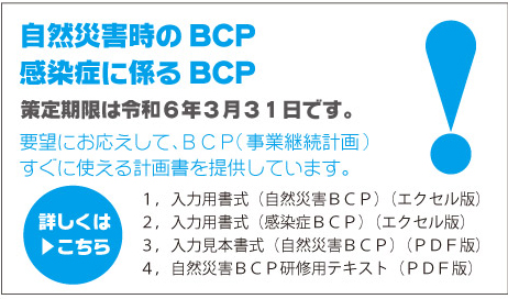 ●2023/9/18 自然災害時のBCP、感染症に係るBCP、書式が完成しました。現在期間限定キャンペーン開催中。 → 詳細はこちら bcp書式セット