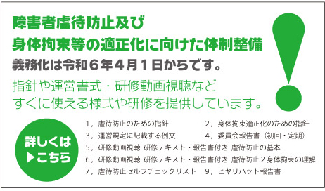 ●2024/1/14 虐待防止関連様式等の提供を開始しました。→ 現在期間限定キャンペーン開催中。→ 詳細はこちら虐待防止関連様式等のセットを提供しています